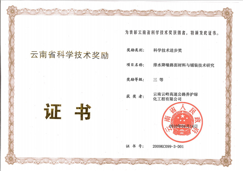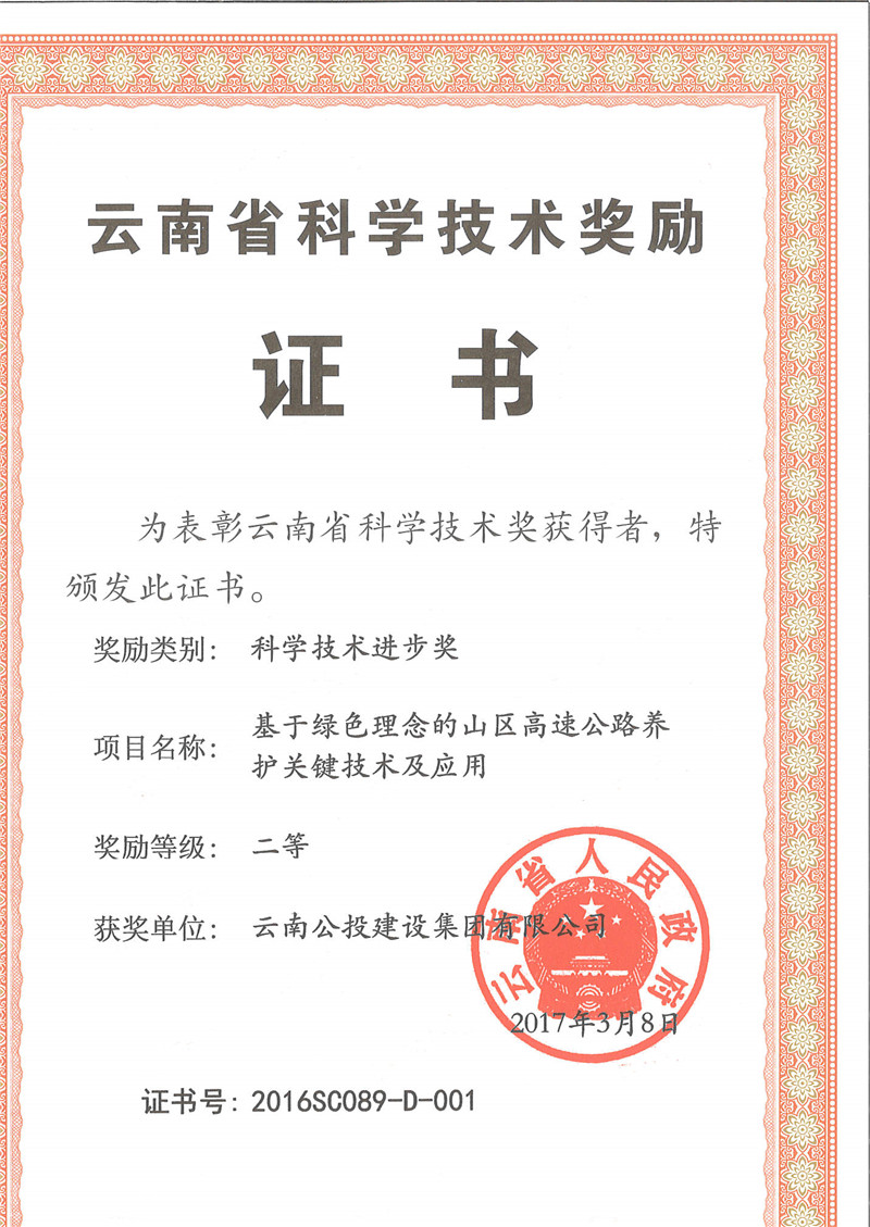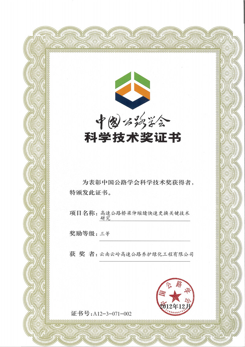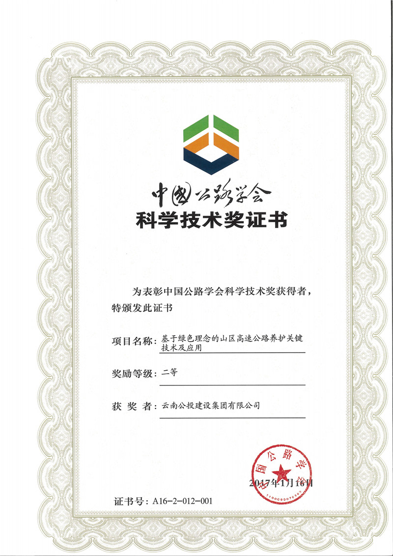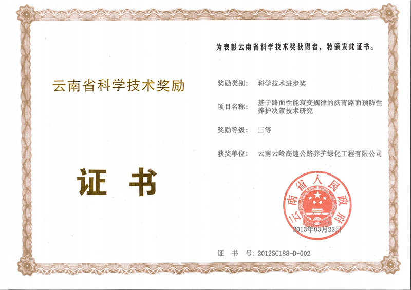 云南省公路學(xué)會獎勵